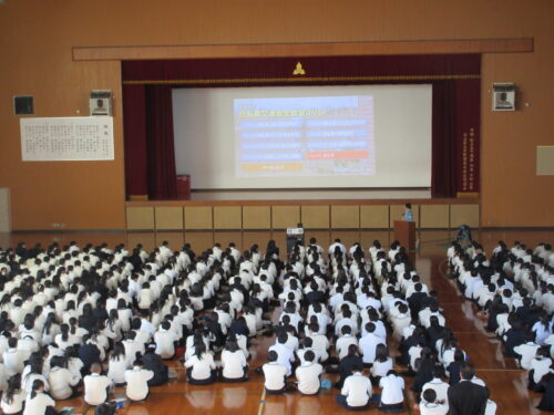投稿日:2025年10月31日(金曜日) 10月29日(水)の2年・3年次LHRは、倉敷警察署による交通安全に関する講演会でした。最初に何パターンもの自転車の交通事故や危険走行の再現動画を見ました。明らかに危険な運転の動画を見て「自分達はそんなことしないよ」という感想を持って笑いが起きていました。