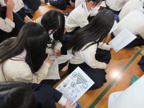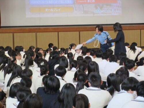 その後、倉敷警察署の西田様が様々な交通クイズをしてくださり、生徒も教員も一緒になって交通ルールについて楽しく学ぶことができました。また、2026年4月1日から始まる自転車の交通違反(青切符)についてもお話くださり、細かい違反一覧を見て、改めて自転車の乗り方について考えさせられました。