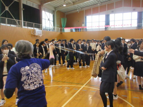 そして各チームが全員体育館に集った後、集計されるまでの間、一般常識の◯✕クイズが行われました。そして結果発表 ⋯ 見事優勝したのは、2年2組! 年次主任から表彰状と景品が贈呈され、会場からは大きな拍手が起こりました。