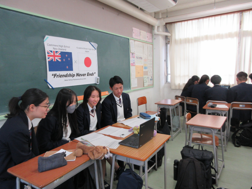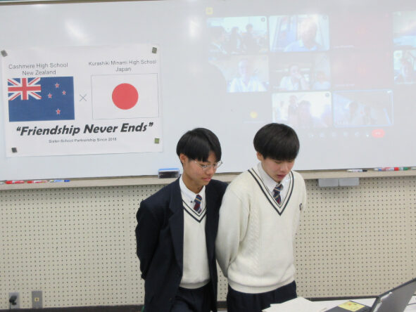 投稿日:2025年11月29日(土曜日)11月28日(金)3限、英語の授業として、倉敷南高校の姉妹校であるカシミア高校との今年度第4回オンライン交流を行いました。