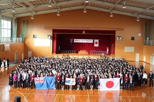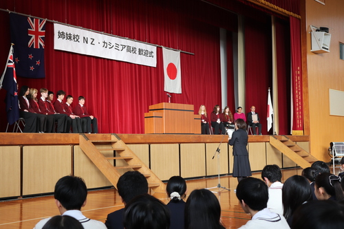投稿日:2025年12月12日(金曜日)12月11日(木)、前日に本校に到着したカシミア高校の生徒・先生のため、体育館に全校生徒(1, 2年次)が集まり、カシミア高校歓迎式を行いました。