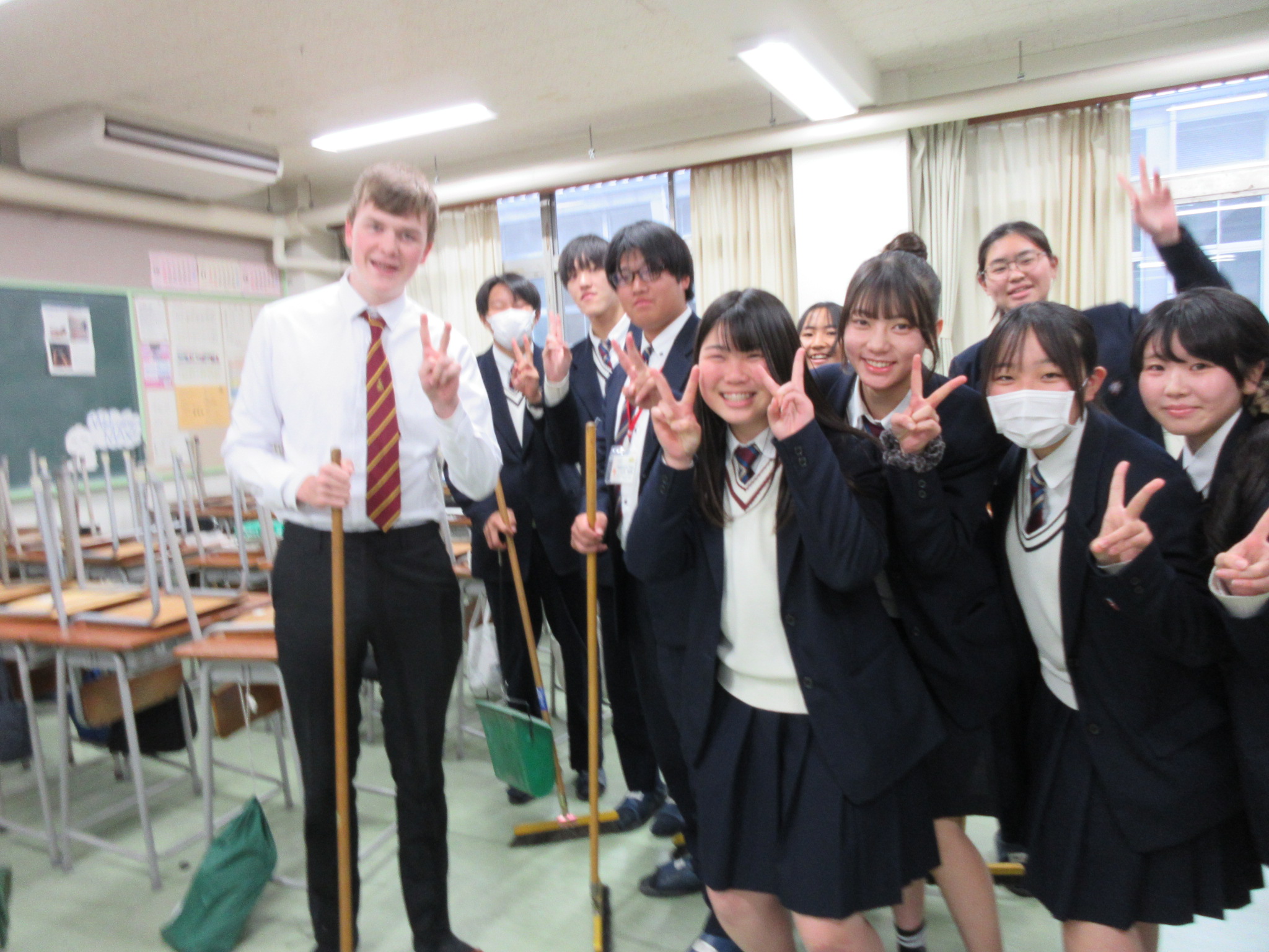 授業後の掃除も一緒にやりました! ニュージーランドの学校生活には「清掃時間」はないそうで、カシミア高生には新鮮な体験だったようです。