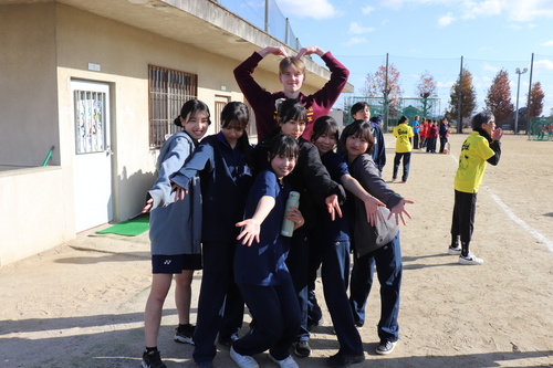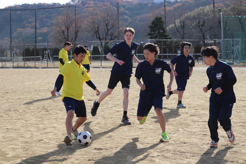 体育委員会が主催し、生徒が主体となって運営するスポーツ大会で、とても楽しそうに競技をしていました。今回は、滞在中のカシミア高生も参加してもらい、冷たい風の中、一緒に走りました! 試合前には一緒に円陣を組み、試合後には一緒に喜んだり、悔しがったりしました。カシミア高生もすでにクラスの一員になっていました。