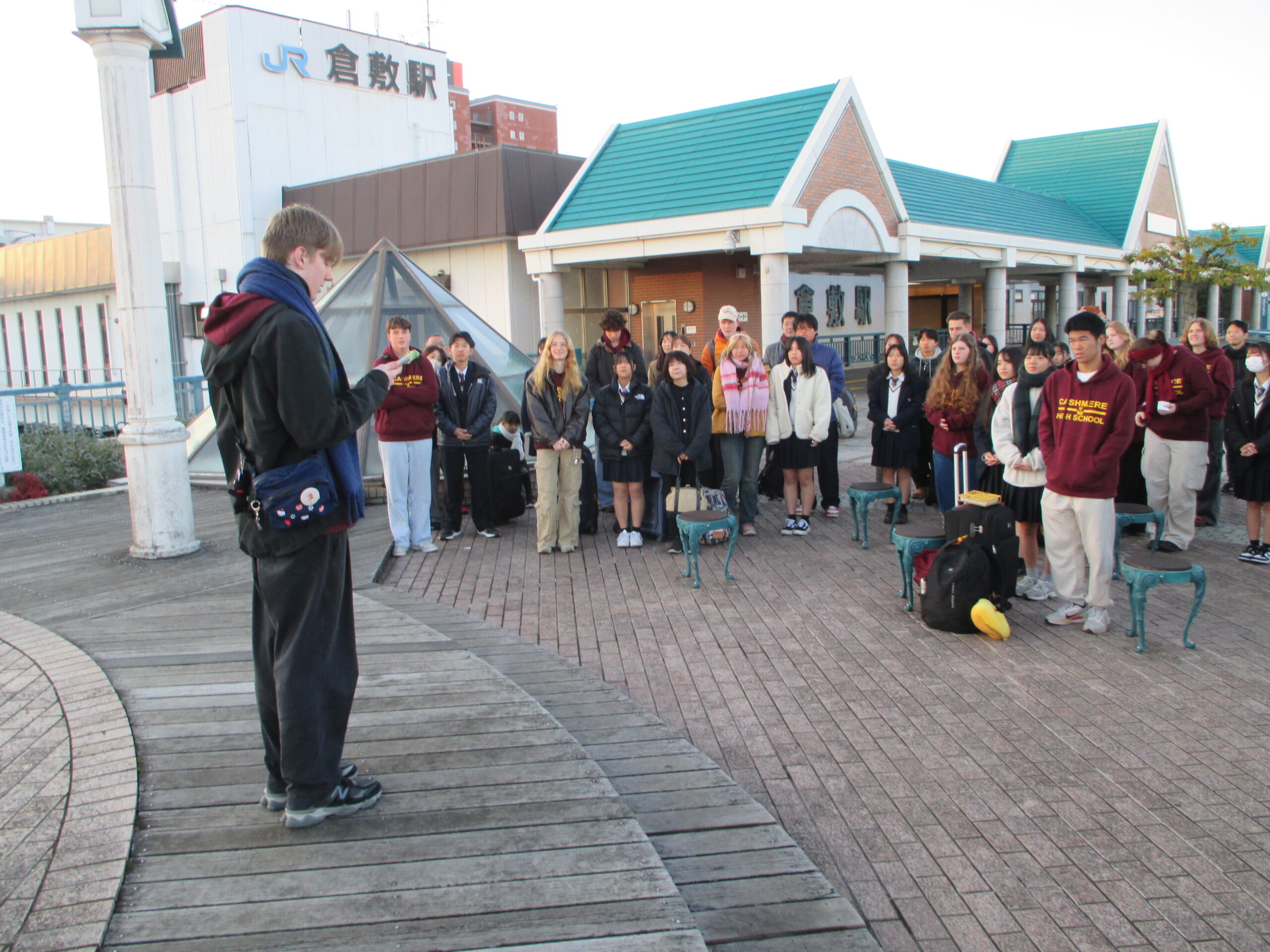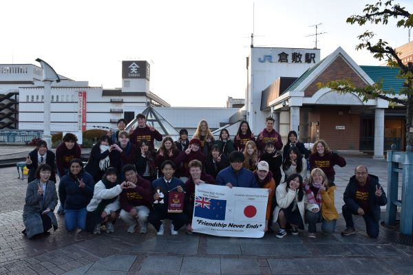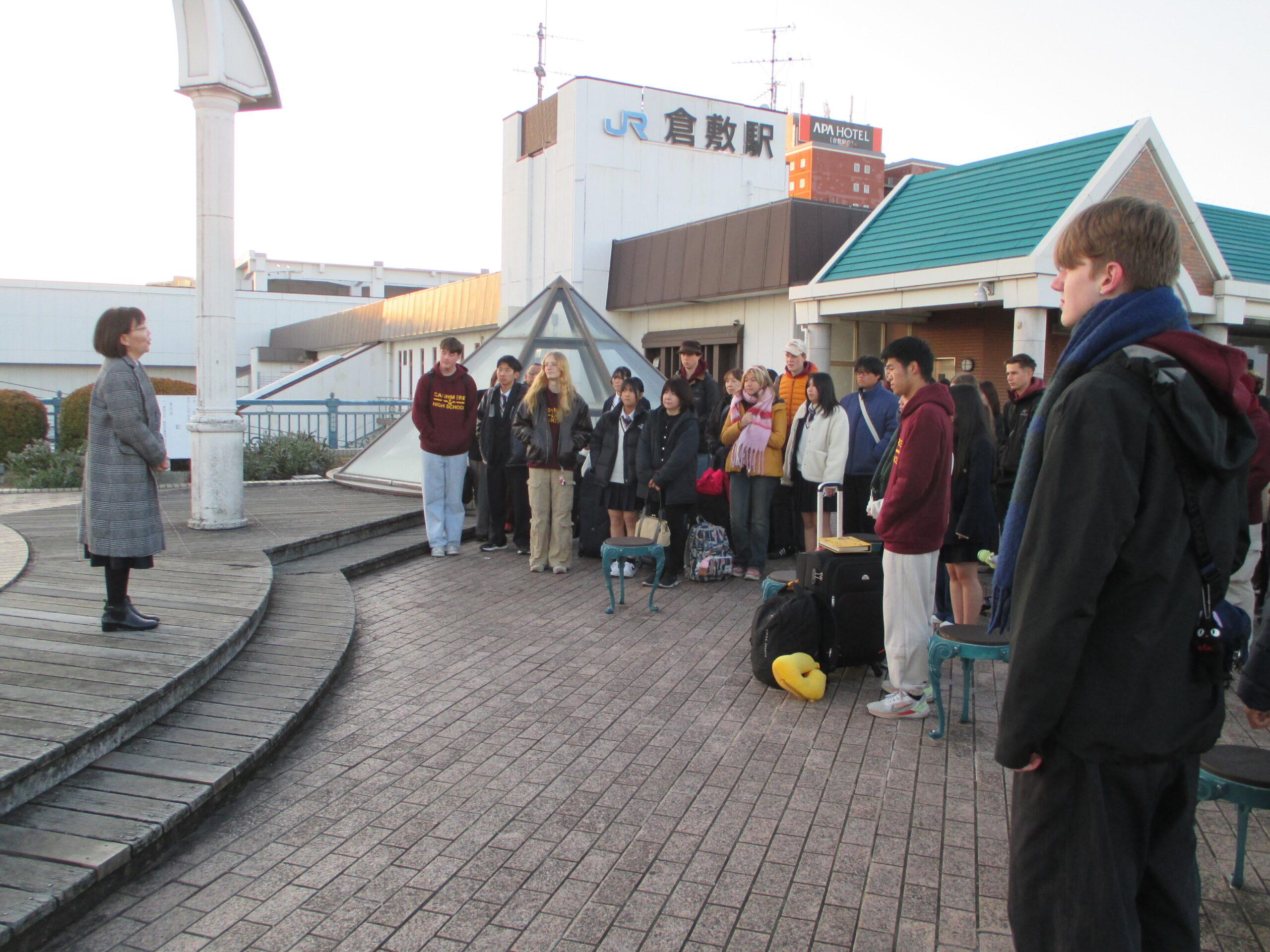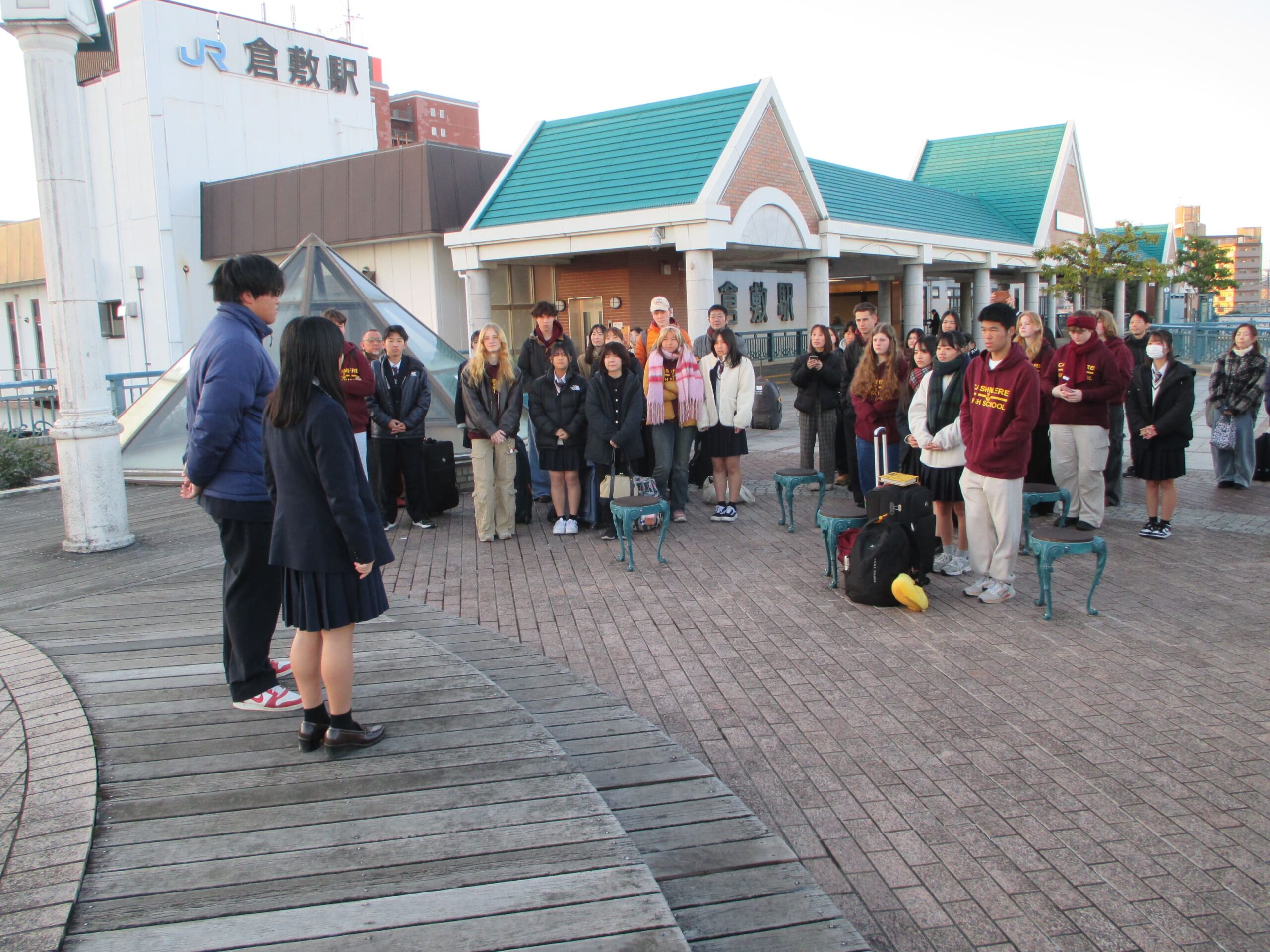 投稿日:2025年12月16日(火曜日)12月15日(月)朝、10日(水)から本校生徒宅にホームステイしていた姉妹校カシミア高校の生徒たちが倉敷駅を出発しました。出発前にお別れセレモニーを行いました。本校校長、カシミア高校引率教員、本校生徒、カシミア高校生徒が挨拶しました。このホームステイでの思い出をいつまでも忘れず、今後も友情を継続していく思いを共有しました。また、友情の証をして、カシミア高校が自校独自のハカを再度披露してくれました。
