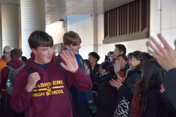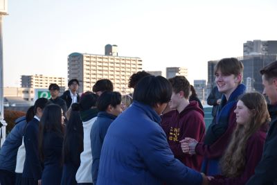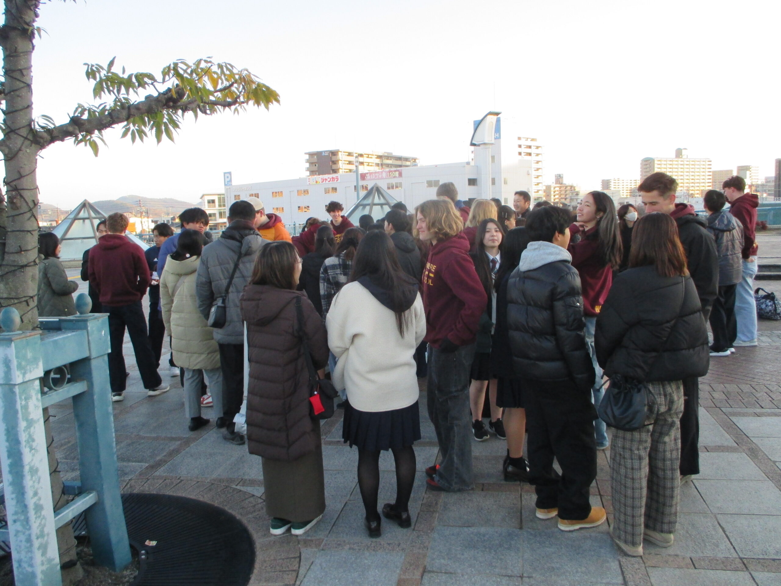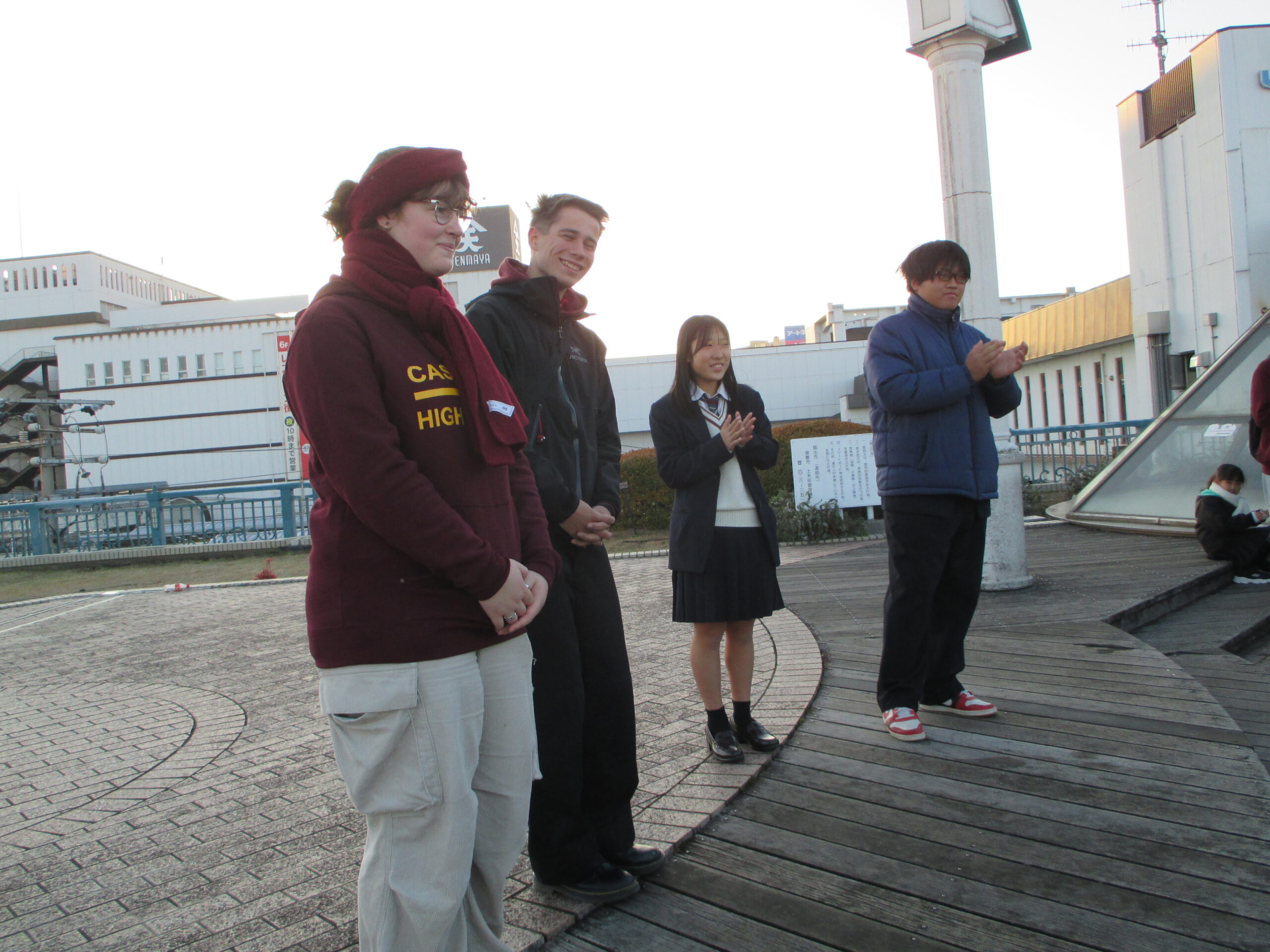 投稿日:2025年12月16日(火曜日)12月15日(月)朝、10日(水)から本校生徒宅にホームステイしていた姉妹校カシミア高校の生徒たちが倉敷駅を出発しました。出発前にお別れセレモニーを行いました。本校校長、カシミア高校引率教員、本校生徒、カシミア高校生徒が挨拶しました。このホームステイでの思い出をいつまでも忘れず、今後も友情を継続していく思いを共有しました。また、友情の証をして、カシミア高校が自校独自のハカを再度披露してくれました。
