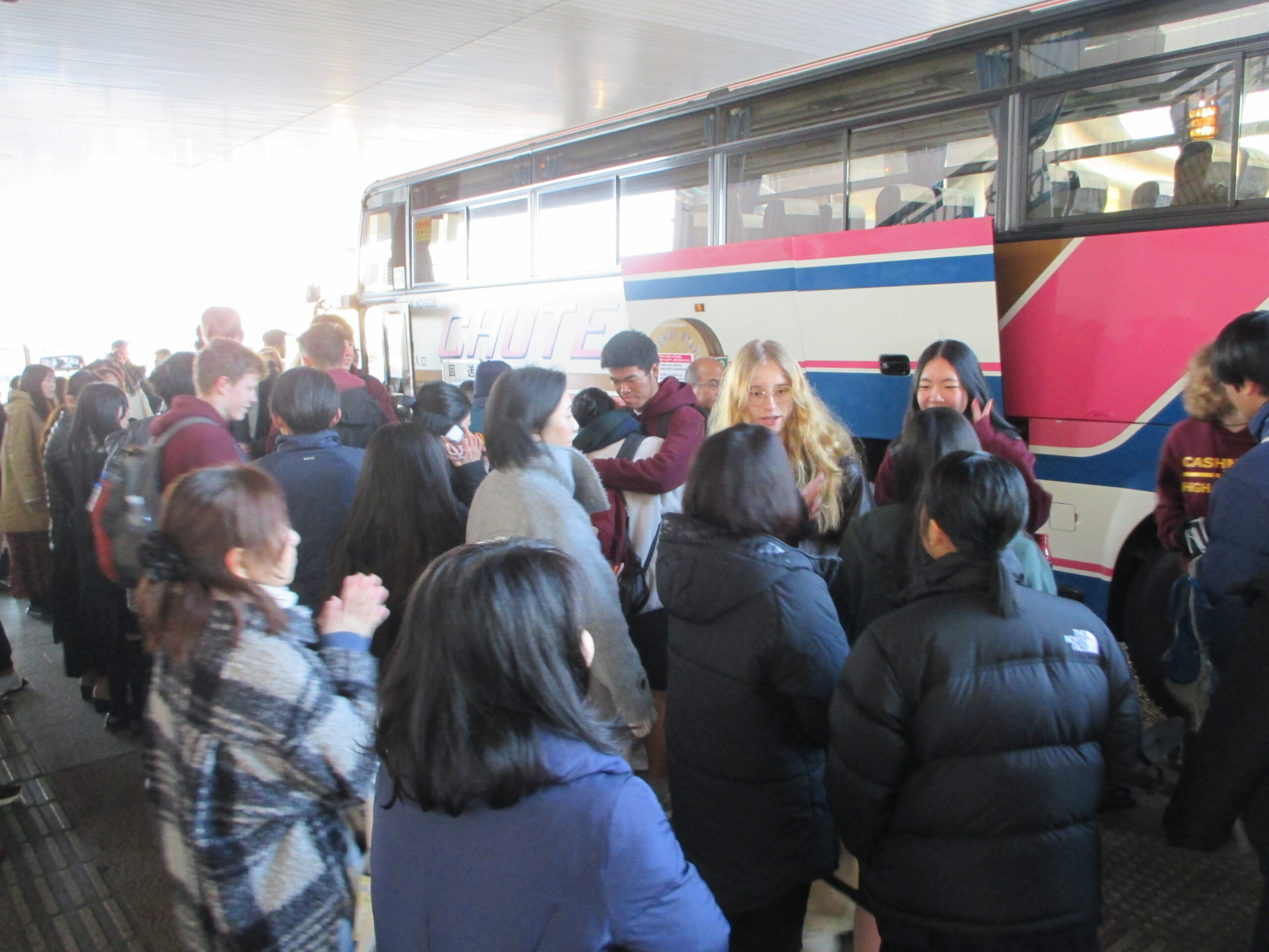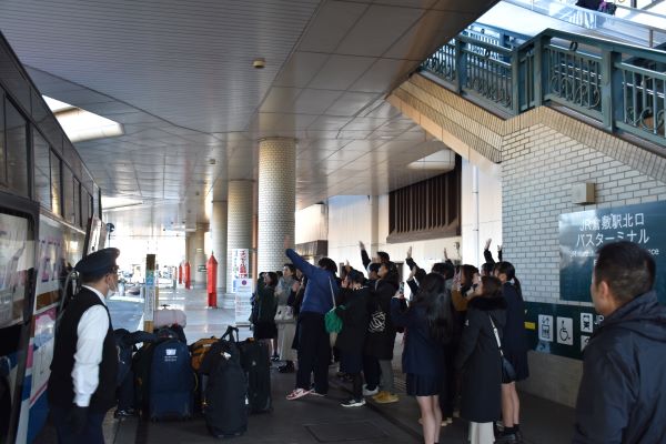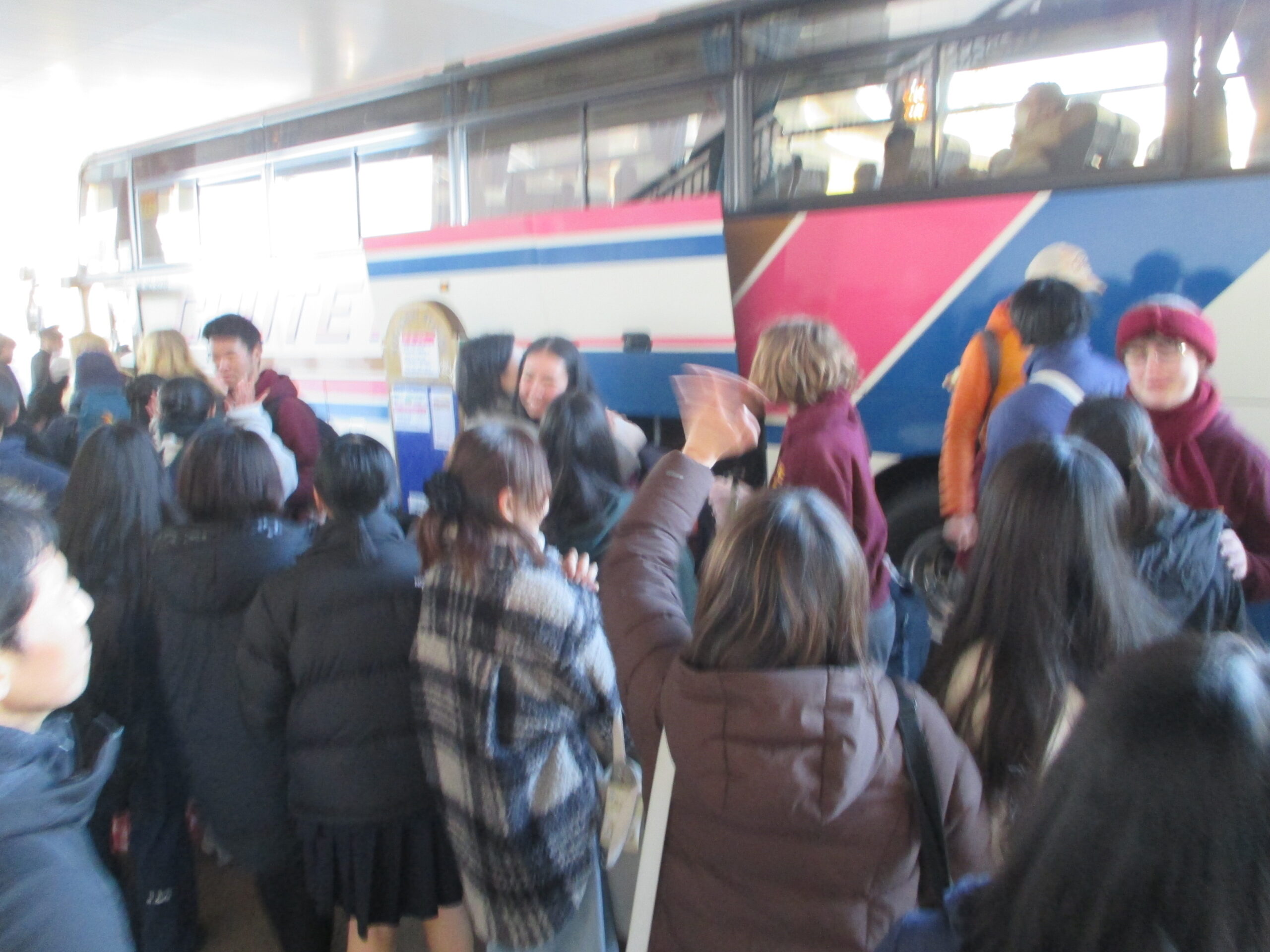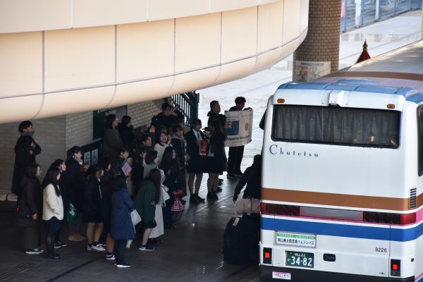 カシミア高生がバスに乗り込むと、本校の生徒たちの目は涙であふれました。そしてバスが見えなくなるまで手を振っていました。カシミア高校のみなさん、気をつけて帰国してください。そして、これからも姉妹校 倉敷南高校をどうぞよろしくお願いします。