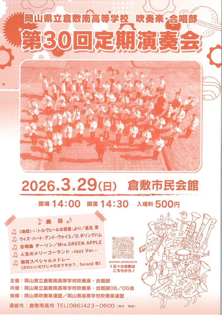 投稿日:2025年12月24日(水曜日)本校吹奏楽部・合唱部の第30回定期演奏会に関するお知らせです。