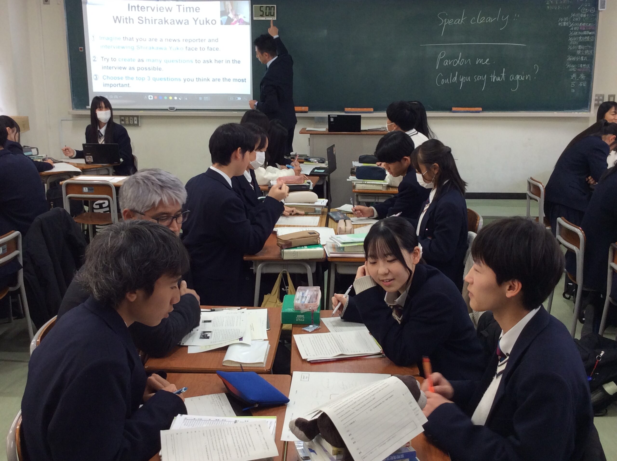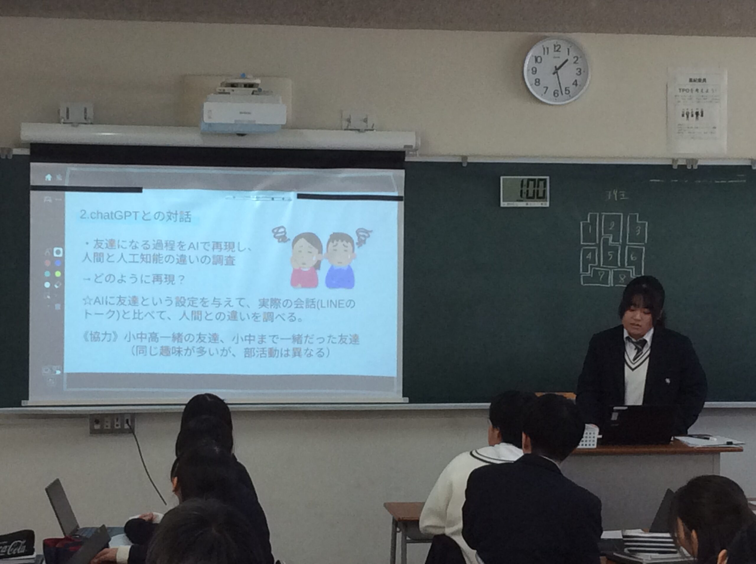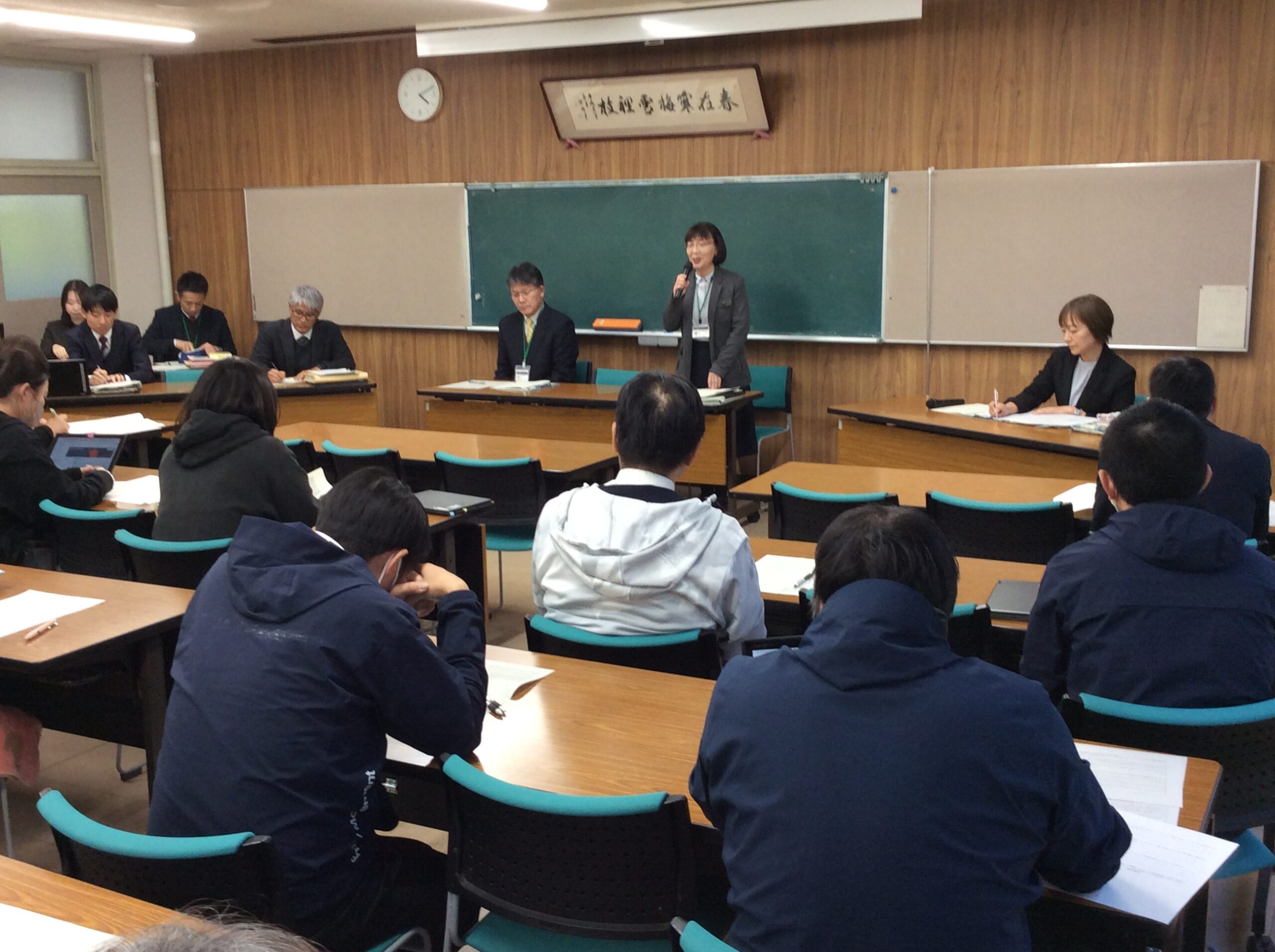 投稿日:2025年12月23日(火曜日)12月22日(月)に、青森県立八戸商業高等学校の宮本幸子先生をお招きして、今年度、「自律した学習者の育成〜質問力の養成から思考力の向上へ〜」の共通テーマのもと全校教員で取り組んでいる授業力向上研修の二回目を開催しました(一回目は5月にオンラインで宮本先生にご出演いただきワークショップ形式で開催しました)。今回は、他校の先生方にも参加を呼びかける形で公開研究授業を3限(理科・化学 2年)、4限(外国語(英語)・英語コミュニケーションⅡ 2年)、5限(国語・現代の国語 1年)、6限(情報・情報Ⅰ 2年)と実施した後、校内教員による研究協議を行い、宮本先生からご講評をいただきました。