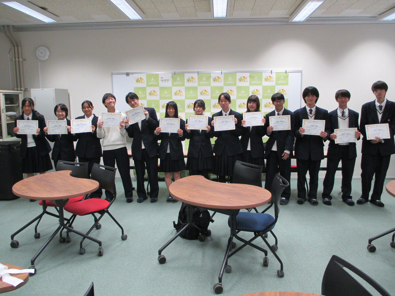 2年次全員(8クラス)が同時に参加した結果、7名が100点満点、6名が99点とハイスコアの争いとなり、個人表彰(10位まで)を行いました。また、クラス対抗では2年2組が1位、3組が2位、1組が3位となり、今回は理系の3クラスが文系5クラスを上回りました。この上位3クラスをクラス表彰しました。