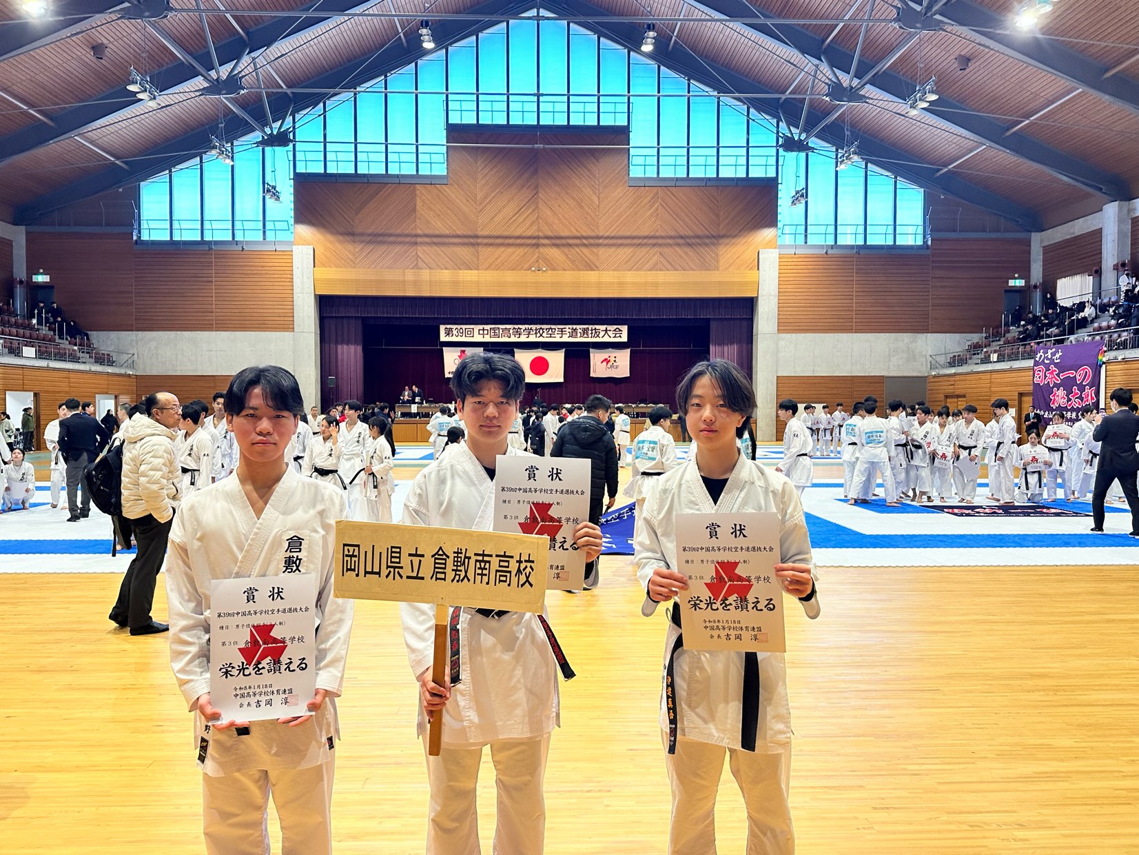 投稿日:2026年1月20日(火曜日)1月16日(金)〜18(日)に鳥取県米子市の鳥取県立武道館で開催された空手道中国選抜大会に、本校一年次男子2名、二年次男子1名が、団体組手三人制と個人組手に出場しました。