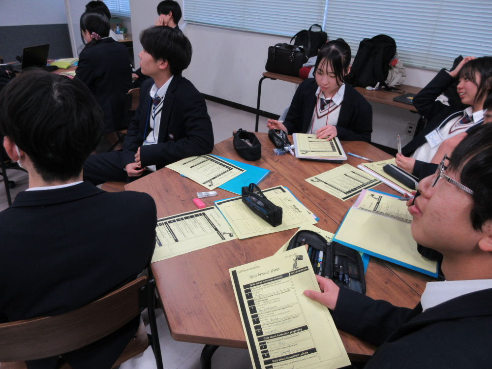 事前研修はオールイングリッシュで進められ、自身のことを英語で紹介したり、クイズ形式でオーストラリアの文化や伝統の理解を深めたりしました。和やかな雰囲気の中で英語を自然と口にするようになり、当初英語に苦手意識があった生徒たちも英語を話すことへの抵抗が少なくなっていきました。現地に行くと、語学学校・ホームステイ先では英語ばかりの時間になります。日本にいるときから少しずつ慣れていきましょう。
