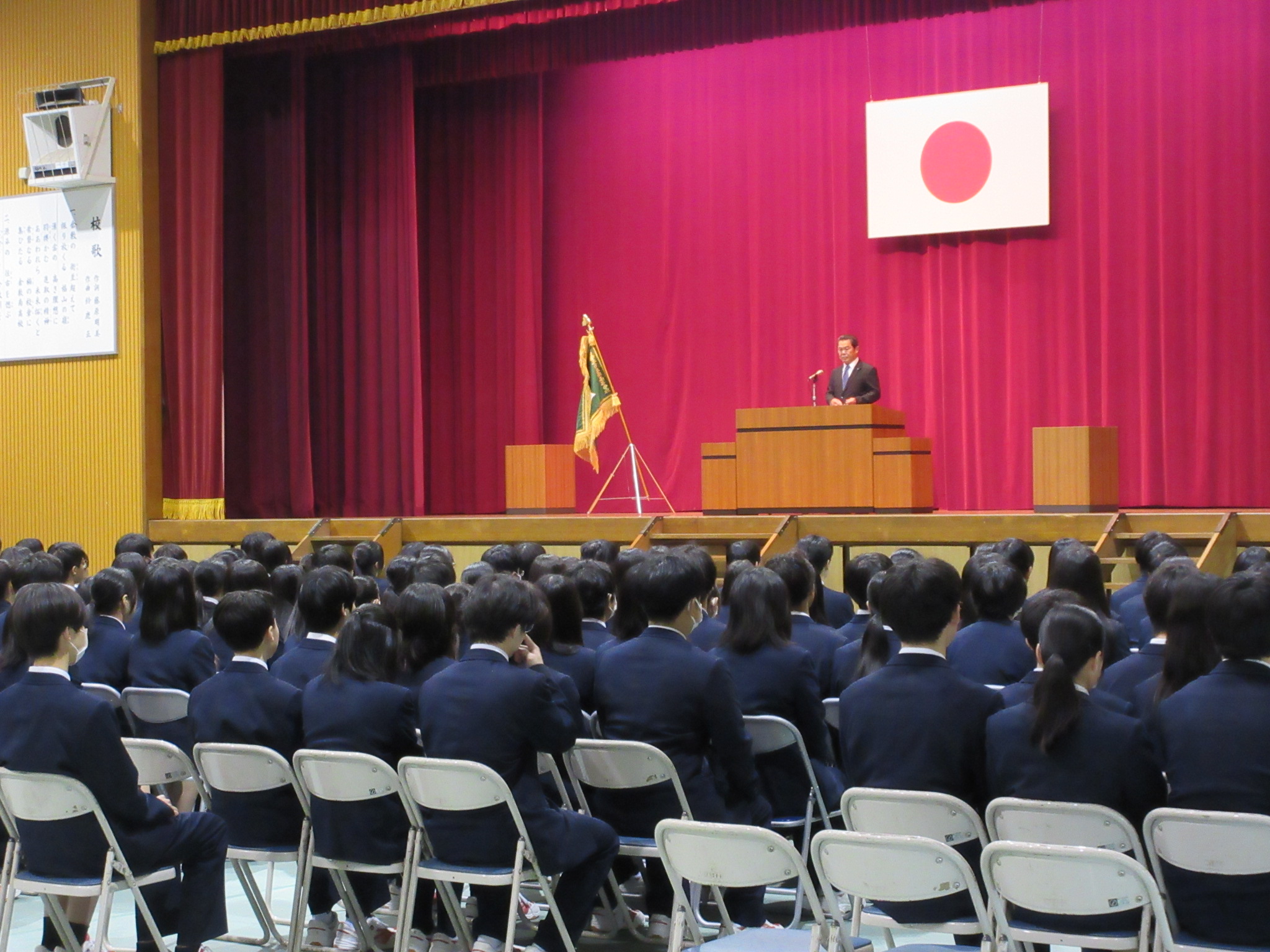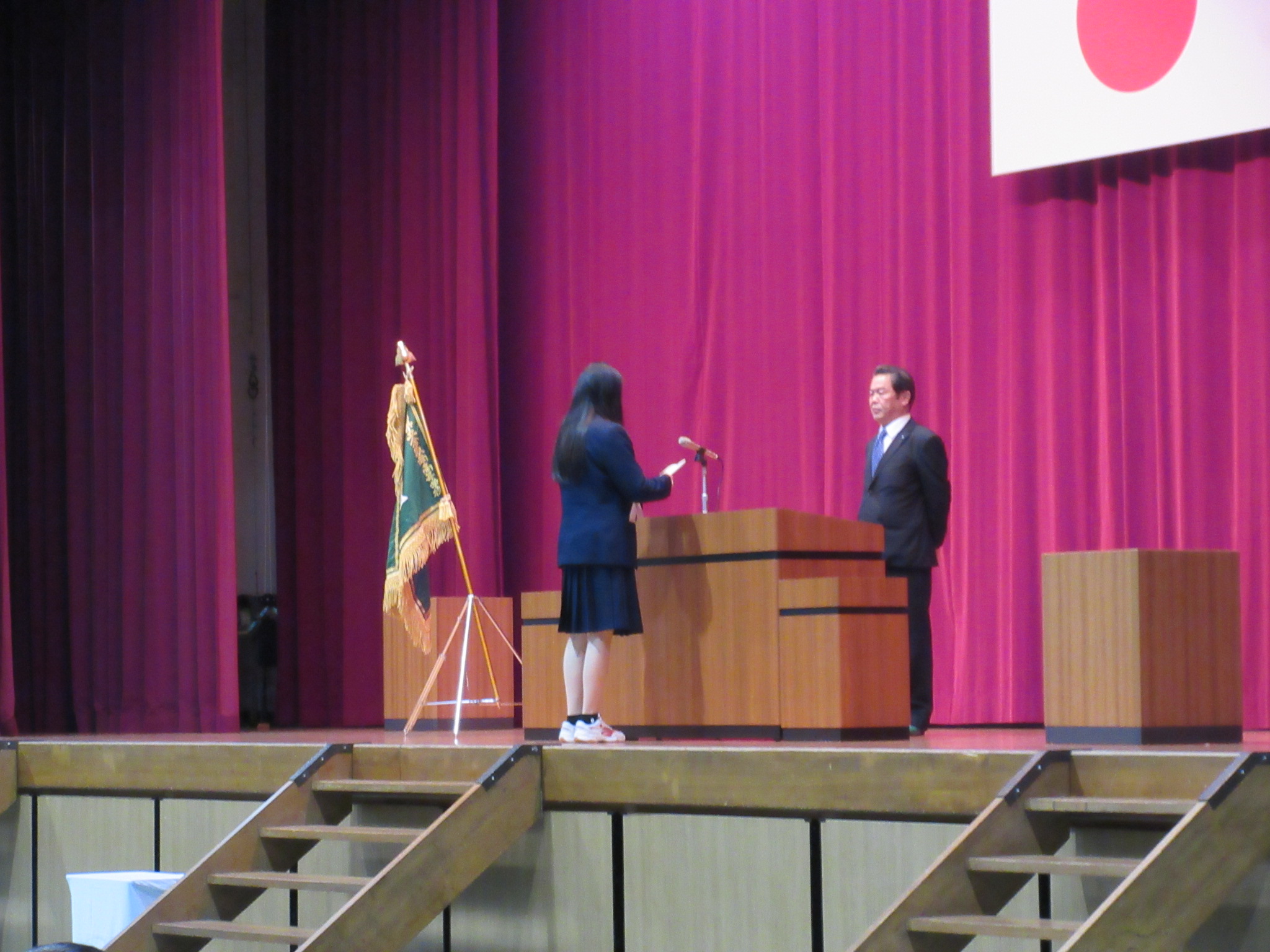 次に、卒業生代表が挨拶をし、最初に「本日晴れて同窓会に入会させていただき、嬉しく思います」と述べました。続けて、本校の校訓に触れ、「これから自分で考えて、友人を大切にし、未来を切り開いていきます」、また「南高出身の多くの先輩方を目標に、周りに信頼される才知ある人間になるよう進んでいきます」と決意を述べました。