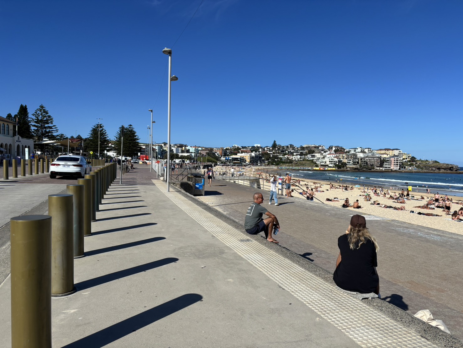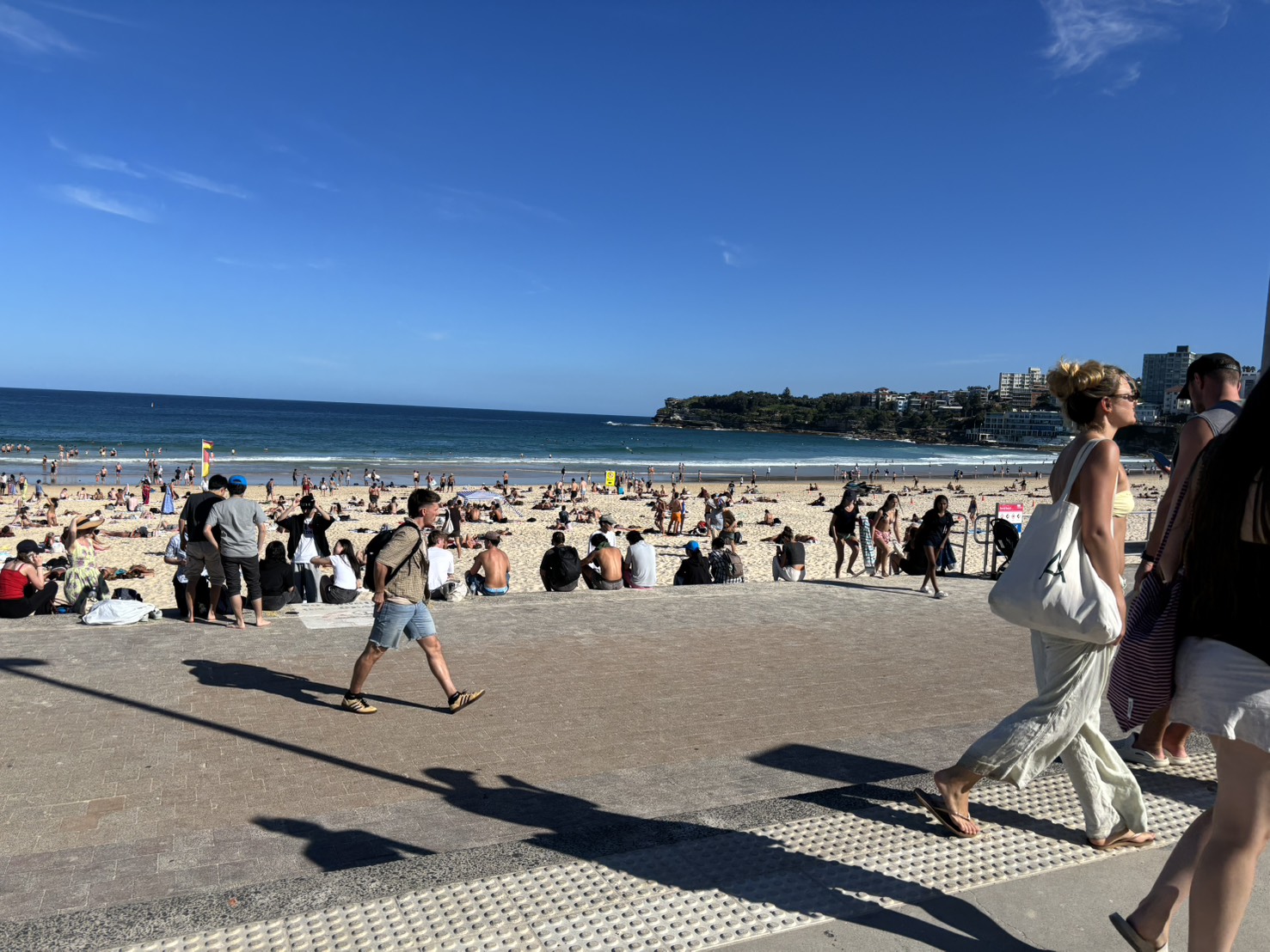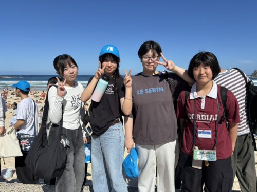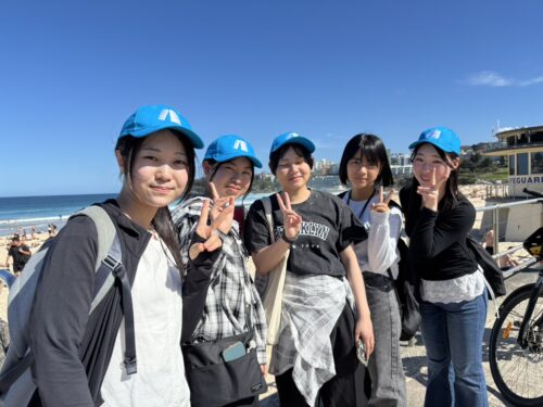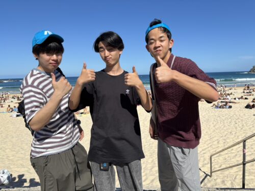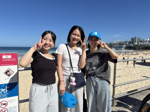 この日、放課後のアクティビティでは、シドニーで最も有名なビーチであるボンダイビーチに行きました。学校近くのシドニーセントラル駅から電車・バスに乗って約1時間かかりました。長旅でしたが、到着して目の当たりにした素晴らしい光景にみんな一瞬で魅了されました。青い空、青い海、のんびりした人々・・・