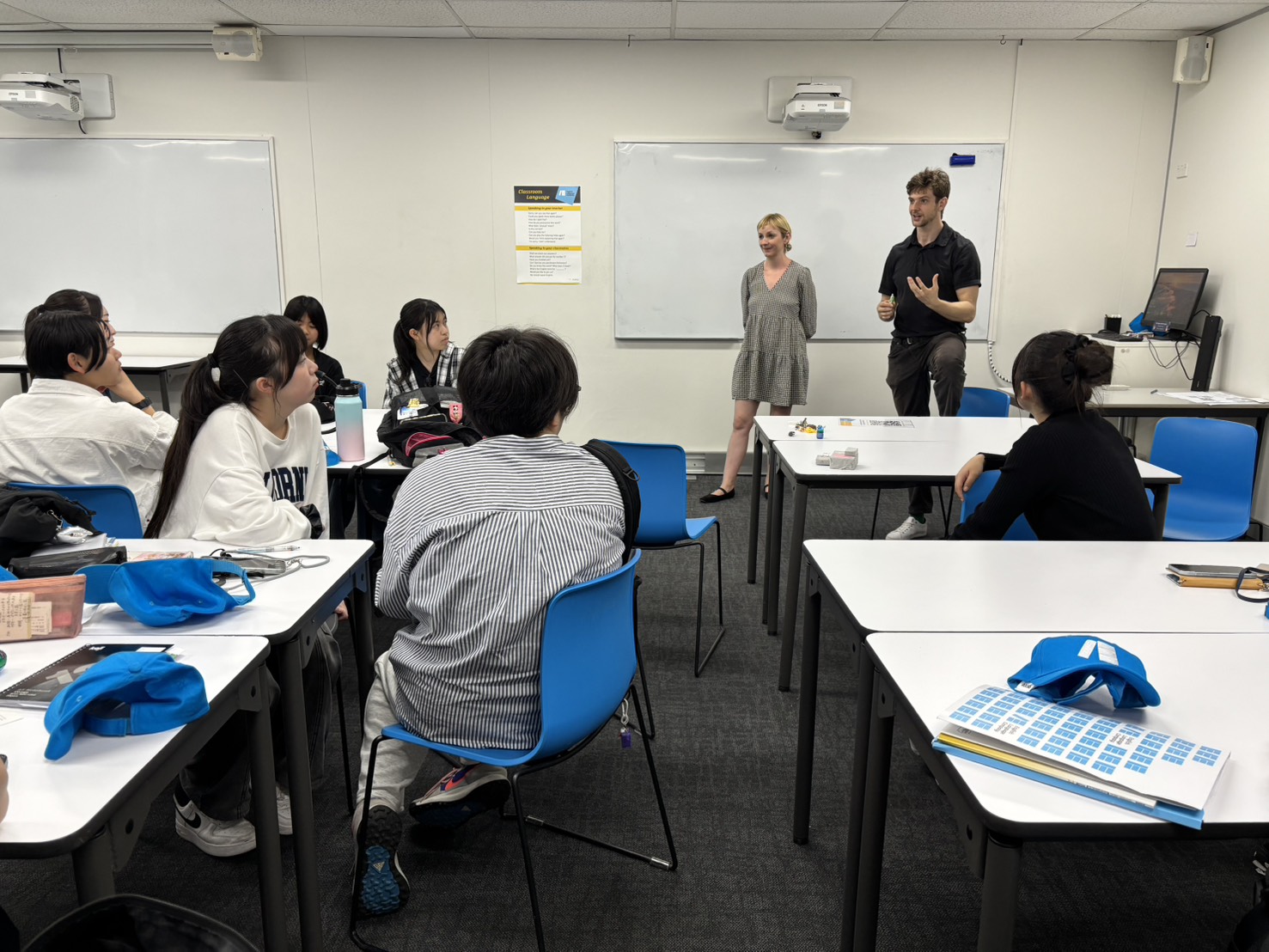 投稿日:2026年4月3日(金曜日)4月3日(金)は、語学学校への登校の最終日となりました。この日はGlobal Citizenshipのレッスンで行ってきた1週間の授業のまとめを、グループごとにプレゼンビデオの形式で作成・発表しました。各グループごとにテーマを設定し、アイデアを出し合って、素晴らしい発表ができました。使用していた英語にも上達が見られ、充実感を持ってレッスンを終えることができました。その後、語学学校から1人1人が修了証を受け取りました。