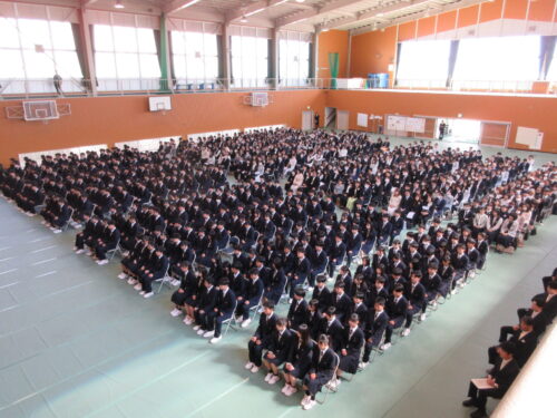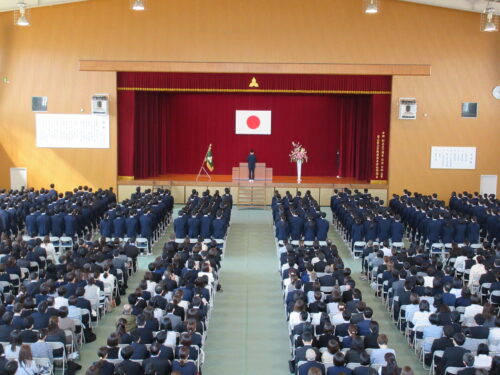 320名の入学許可に続き、校長式辞では「進んで『やってみたい』と思える夢を見つけ、本校のスローガン『夢をかたちにChance & Challenge』のもと、高い志を持って様々なことに挑戦してほしい」との激励の言葉がありました。